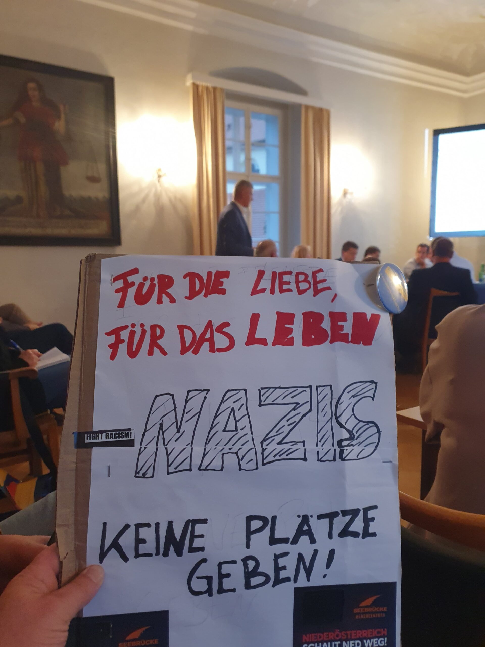 Wir protestieren auch diesmal wieder dagegen, dass René Schimanek – trotz Ermittlungen wegen des Verdachts der NS-Wiederbetätigung und des Waffenbesitzes – das Mandat des Stadtrats ausübt. Wir fordern gemeinsam mit kritischen Langenloiser*innen den Rücktritt Schimaneks.