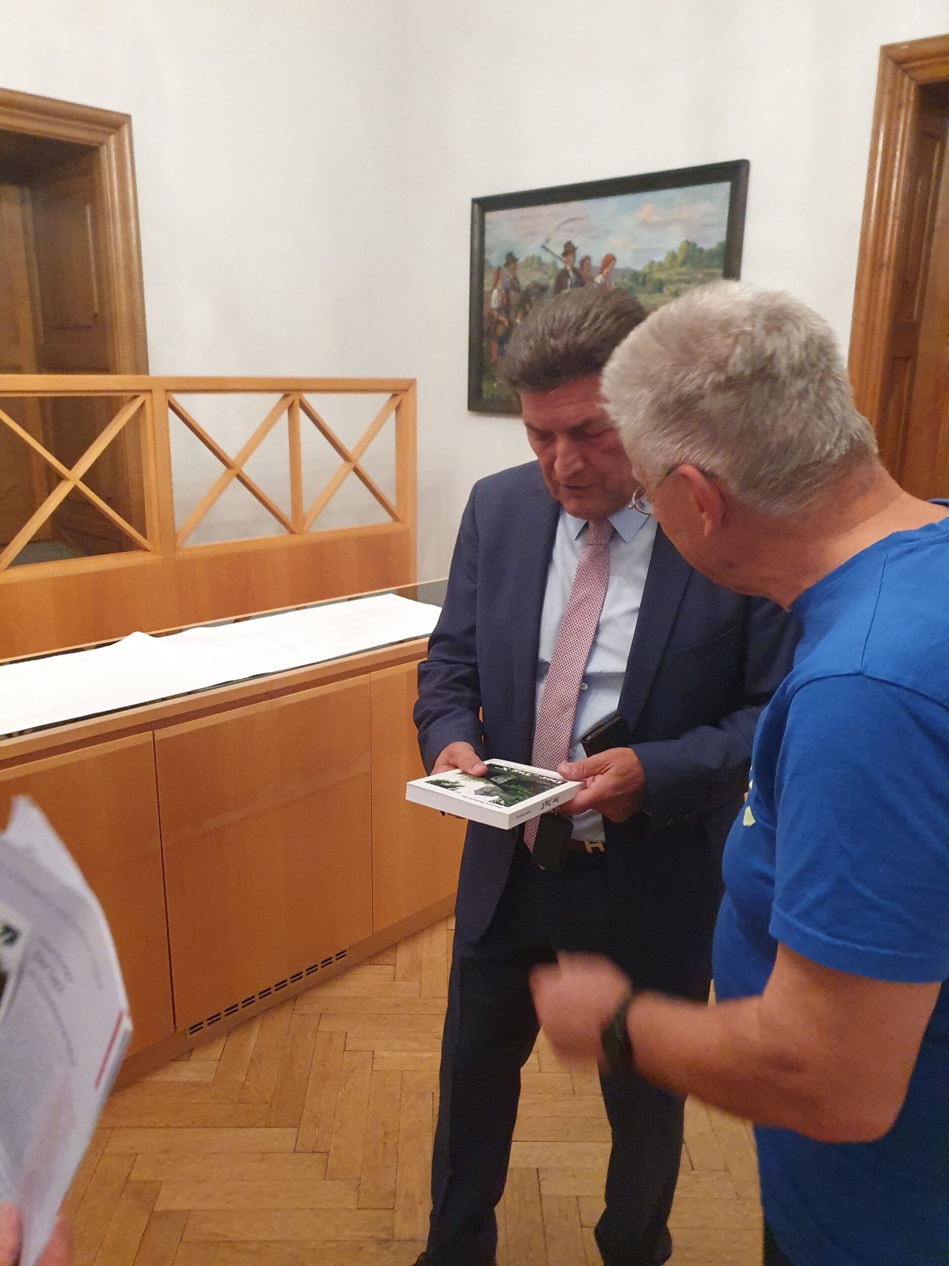 In den bekannt gewordenen Mails ist eine Verbindung zu NS-Ideologie offensichtlich und führte zum Rücktritt von René Schimanek als Büroleiter von FPÖ Nationalratspräsident Rosenkranz – siehe Stoppt die Rechten. Unter anderem fand eine e-mail Korrespondenz zwischen H.J. Schimanek jun. und seinem Bruder René statt, die schweren Rassismus und einschlägige NS-Codes enthält (siehe Stoppt die Rechten). H.J. Schimanek jun. wurde bereits wegen NS-Wiederbetätigung verurteilt und wohnt jetzt wieder im Bezirk Langenlois. Jahrelang wurde vieles in der Umgebung vertuscht und verharmlost. Auch werden viele Langenloiser*innen bis heute eingeschüchtert, wie aus dem neu erschienenen Buch „Der „Tag X““ von Gernot Rohrhofer hervorgeht. Im Rahmen der Gemeinderatssitzung am 25.9.25 haben wir Bürgermeister Leopold ein Exemplar überreicht und bei vielen Gesprächen mit Gemeinderät*innen unseren Protest ausgedrückt.