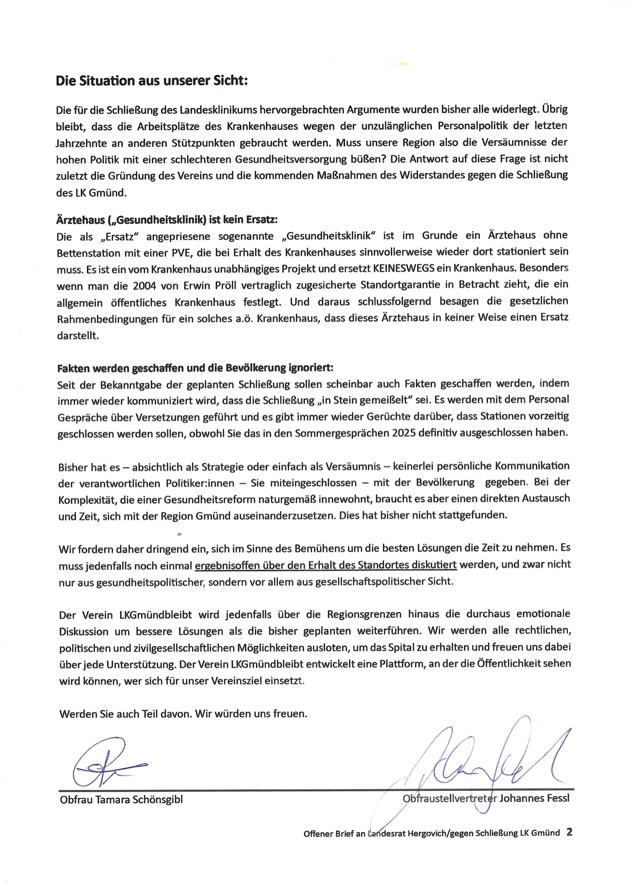Der Verein „LKGmündbleibt“ wird ebenso Offene Briefe an ÖVP, FPÖ, SPÖ, Grüne und Neos schicken. #zusammenHaltNÖ wird in der Folge die Offenen Briefe und Antworten der Parteien veröffentlichen.